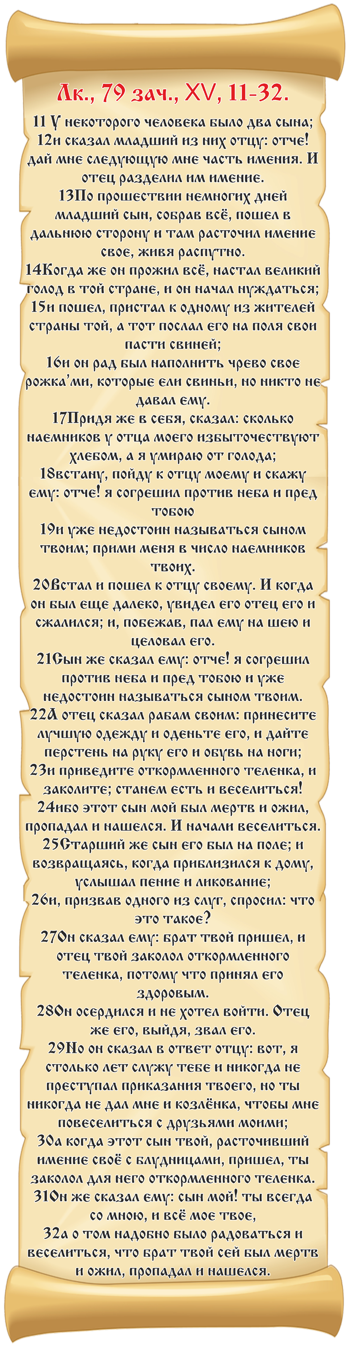 «Ты всегда со мною и все мое — твое» — этим указывается на то, что фарисеи, в руках которых закон, всегда могут иметь доступ к Богу и духовным благам, но не могут заслужить благоволения Отца Небесного при таком извращенном и жестоком духовно-нравственном настроении.